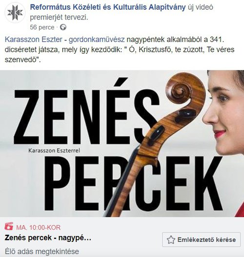 Karasszon Eszter gordonkaművésznek köszönhetően a kanapédon is élvezheti majd a református dallamokat! A Zenés percek első videóját jövő héten, nagypénteken mutatjuk be. Jöjjön, tarton velünk Ön is!