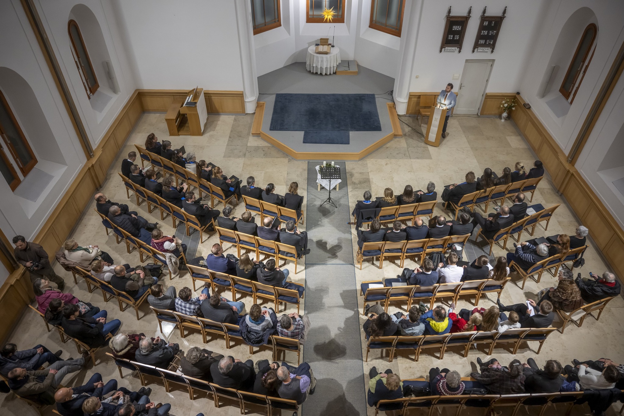 Advent harmadik vasárnapján zárta évadját a Központi Református Kórus. Zenés áhítatuk során felcsendültek ismert karácsonyi énekek és a református kórusmuzsika alapdarabjai. A KRK együttesét a Hold utcai Református Kamarakórus is kiegészítette. Az énekeseket a KRK vezetői, Berkesi Boglárka karnagy és Erdélyi Dániel kamester dirigálta majd, orgonán közreműködött Szotyori Nagy Gábor orgonaművész.